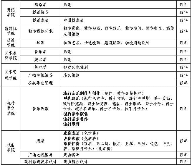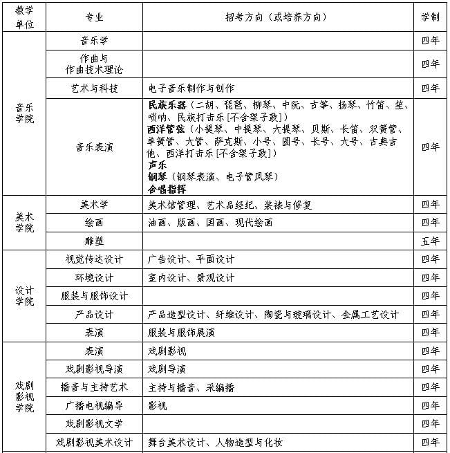 注:1、艺术类专业外省不编制具体分省计划,具体专业以2019年各省招生考试机构公布的为准。